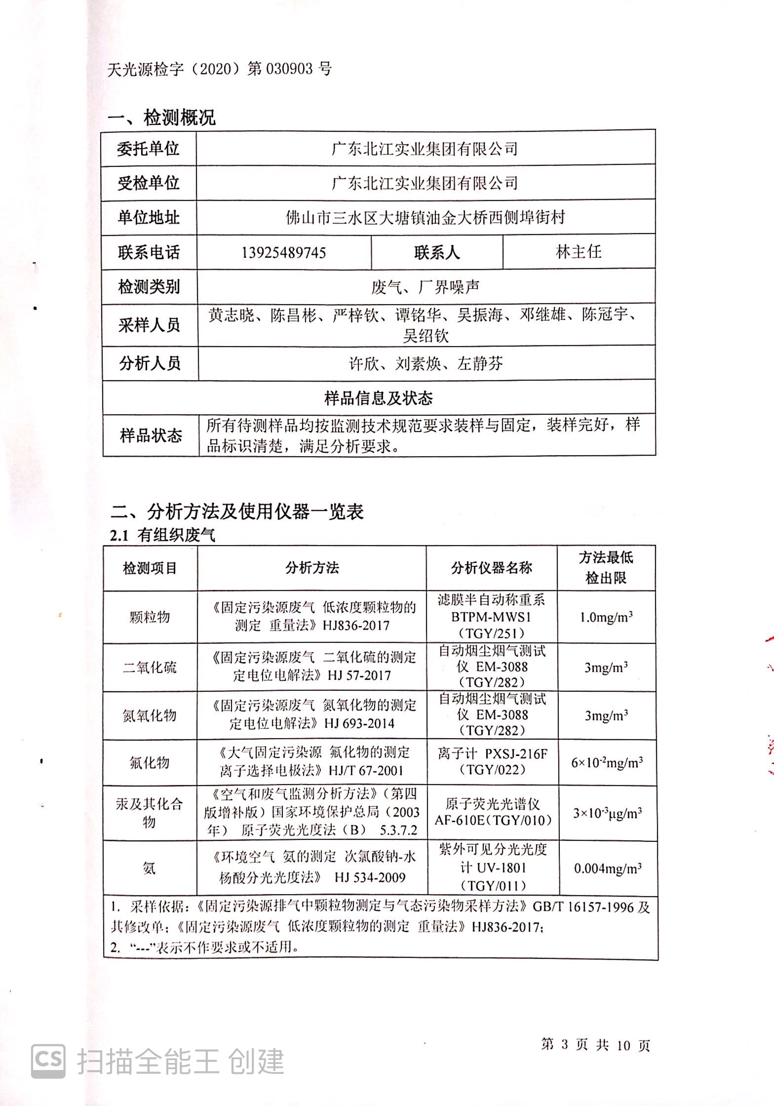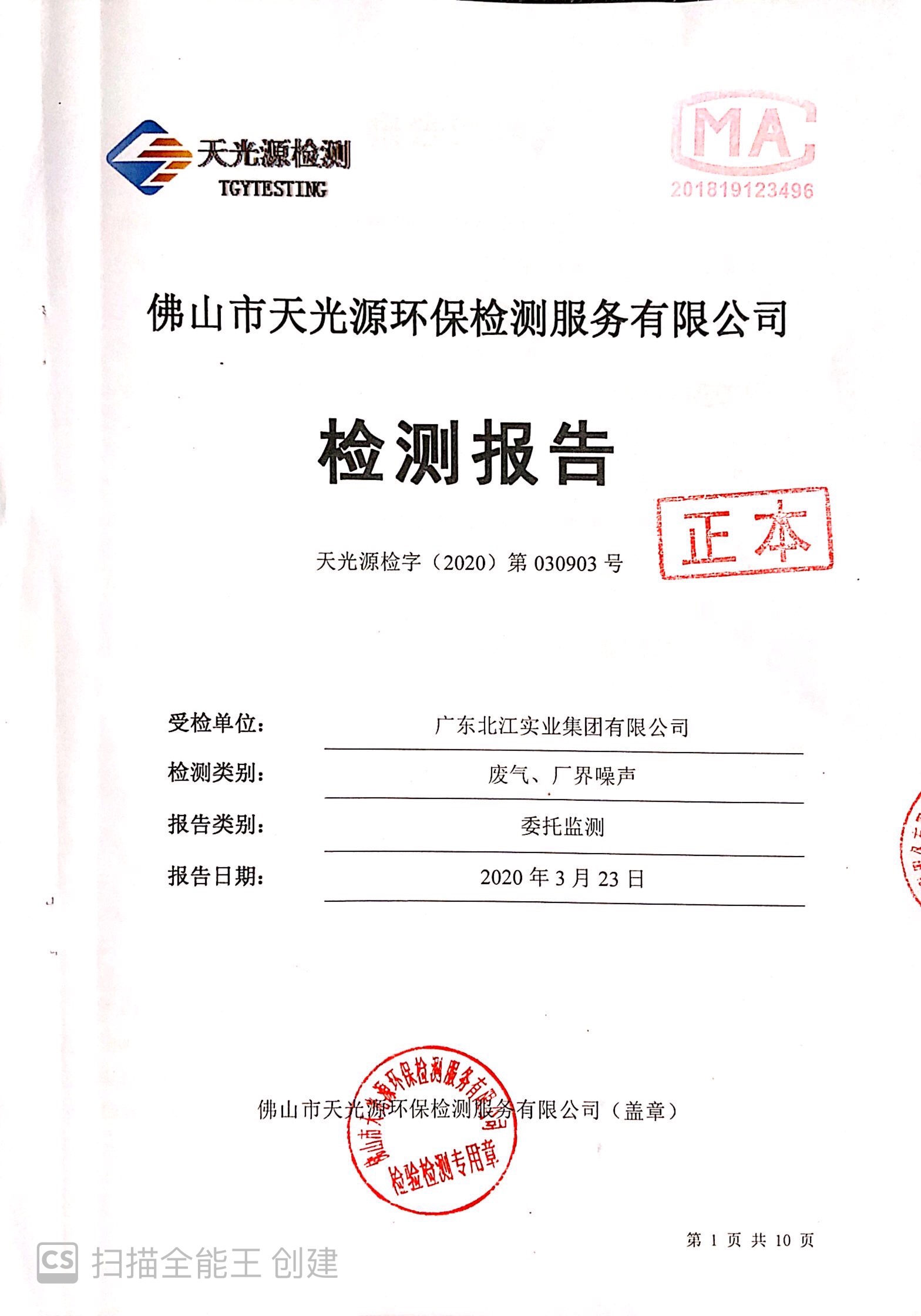 廣東北江實業(yè)集團有限公司廢氣、廠界噪聲檢測報告