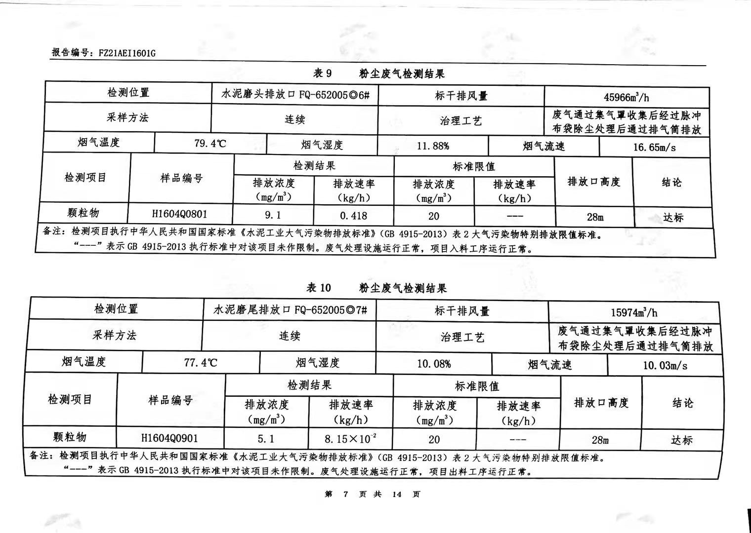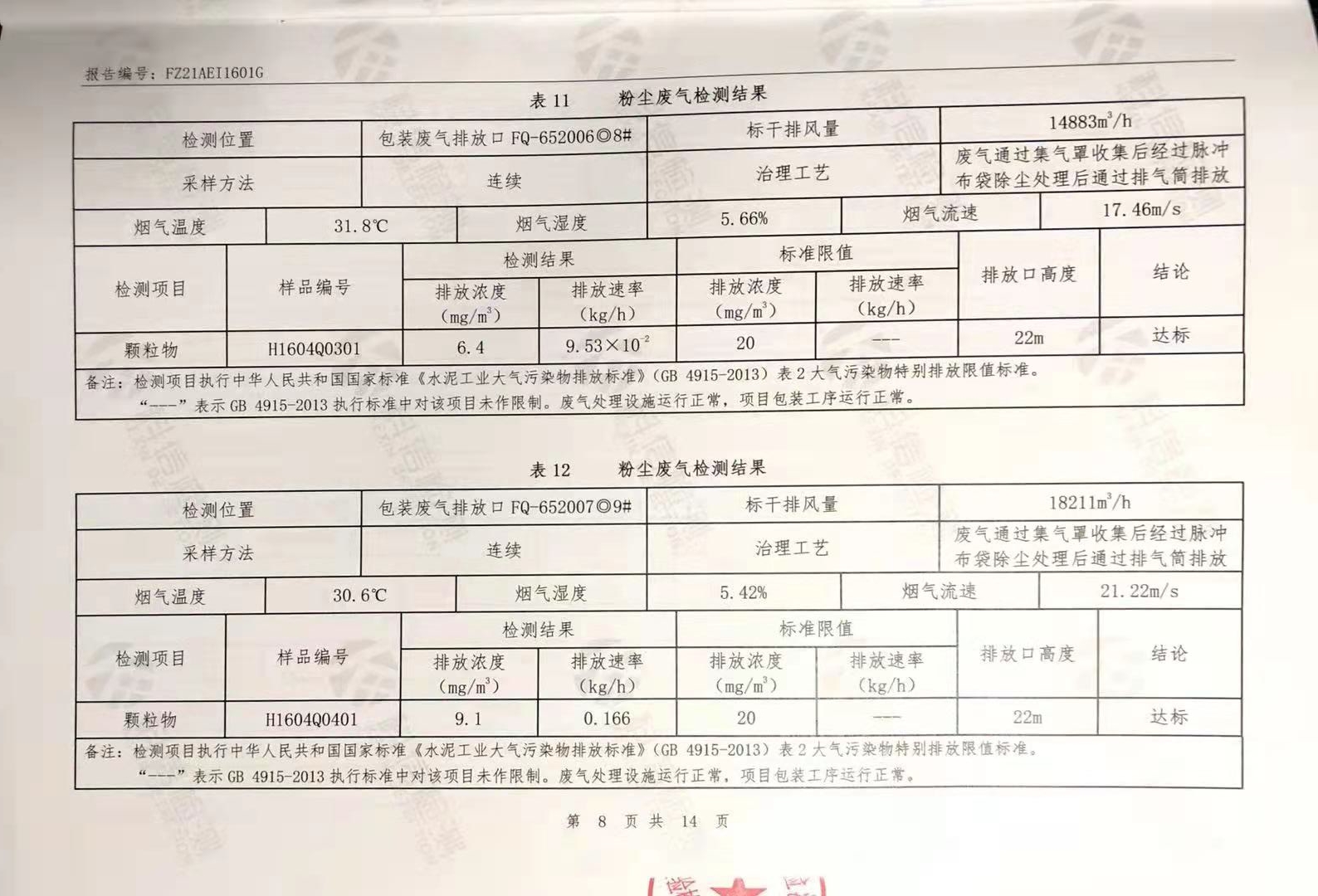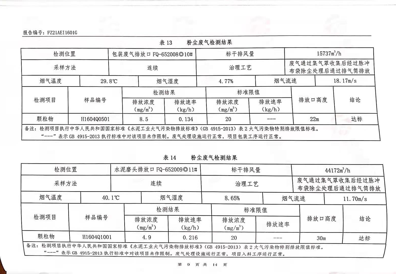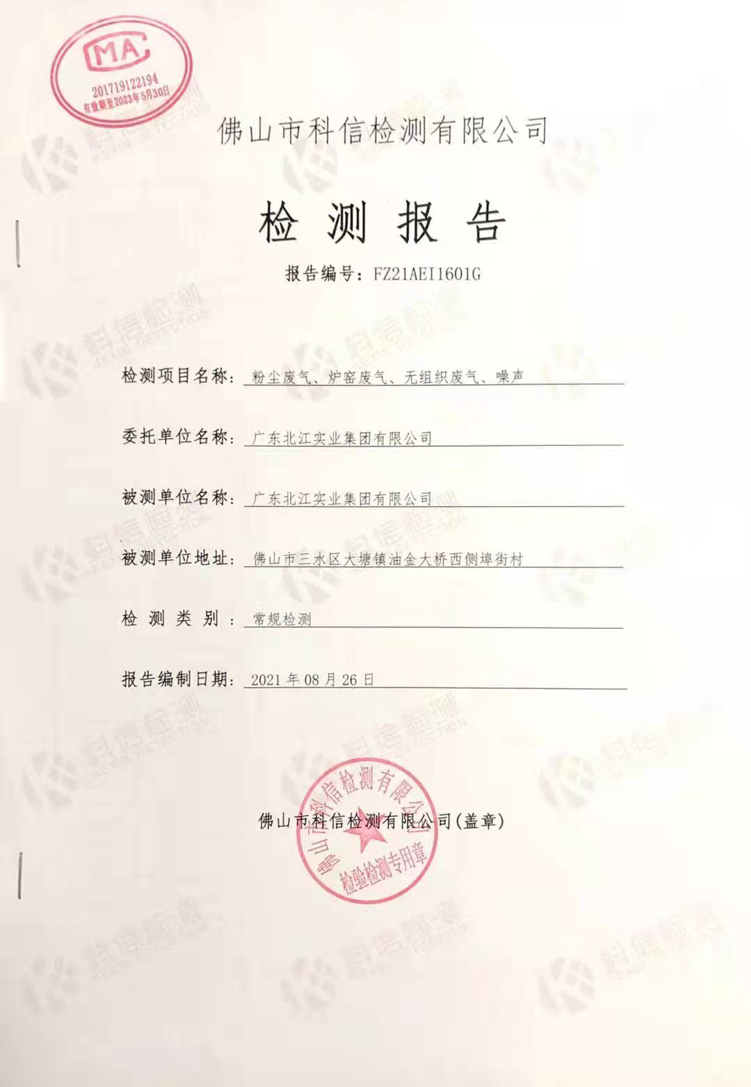 粉塵廢氣、窯爐廢氣、無組織廢氣、噪聲檢測報告