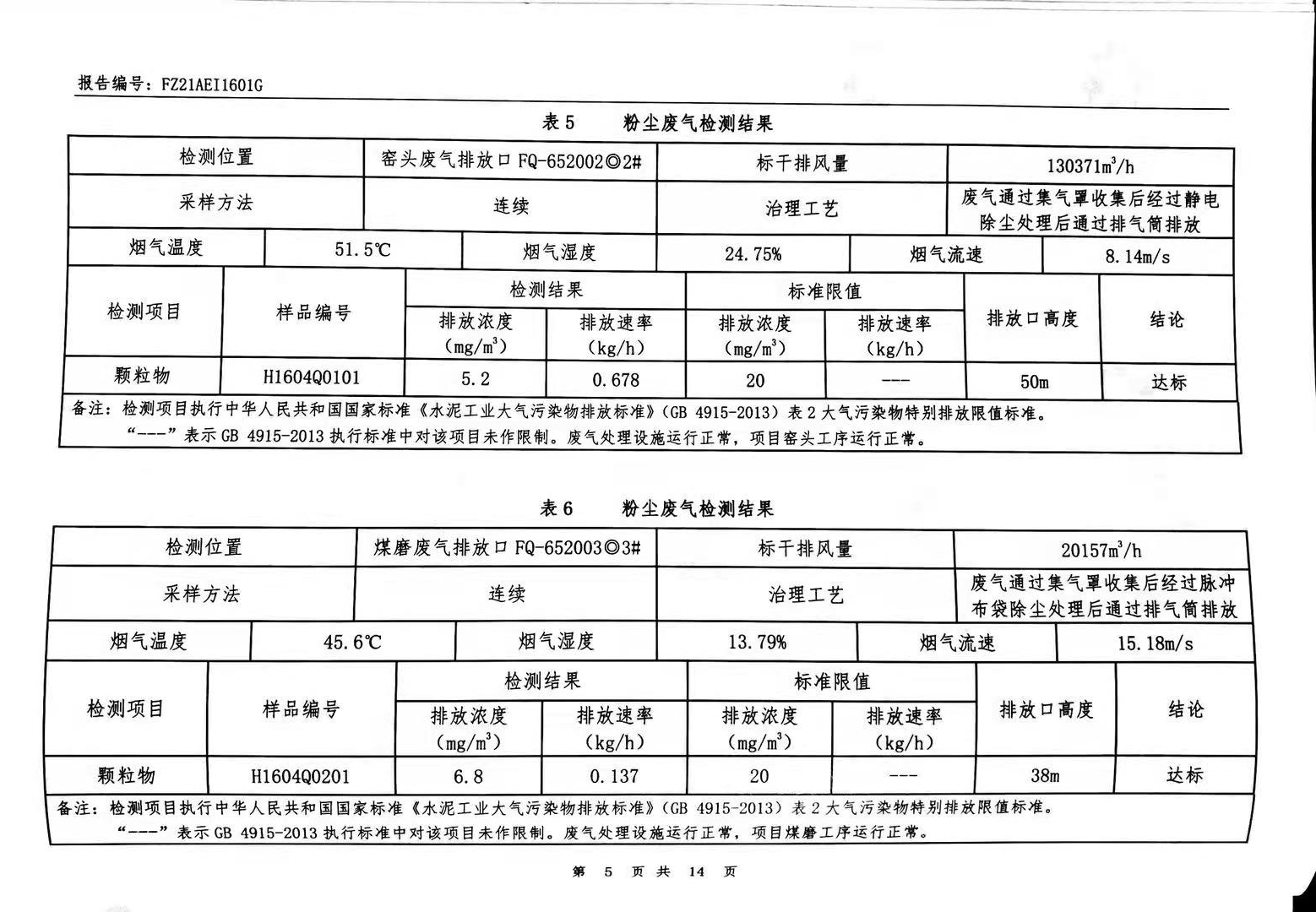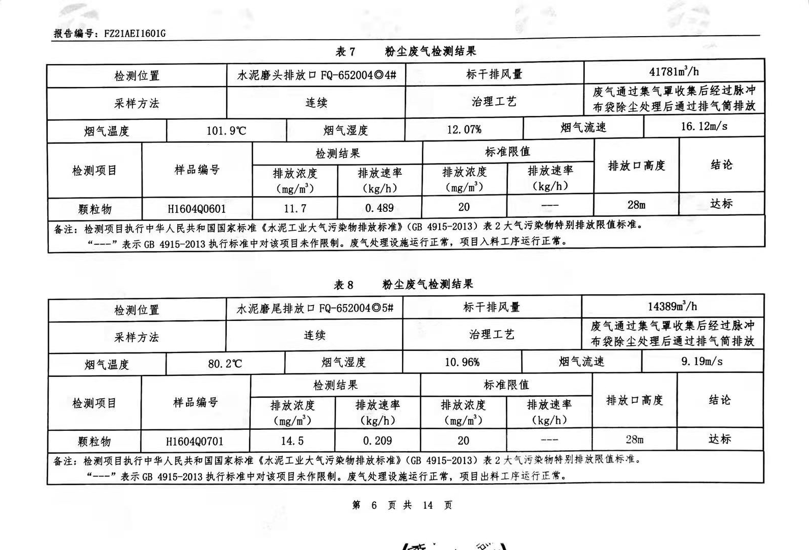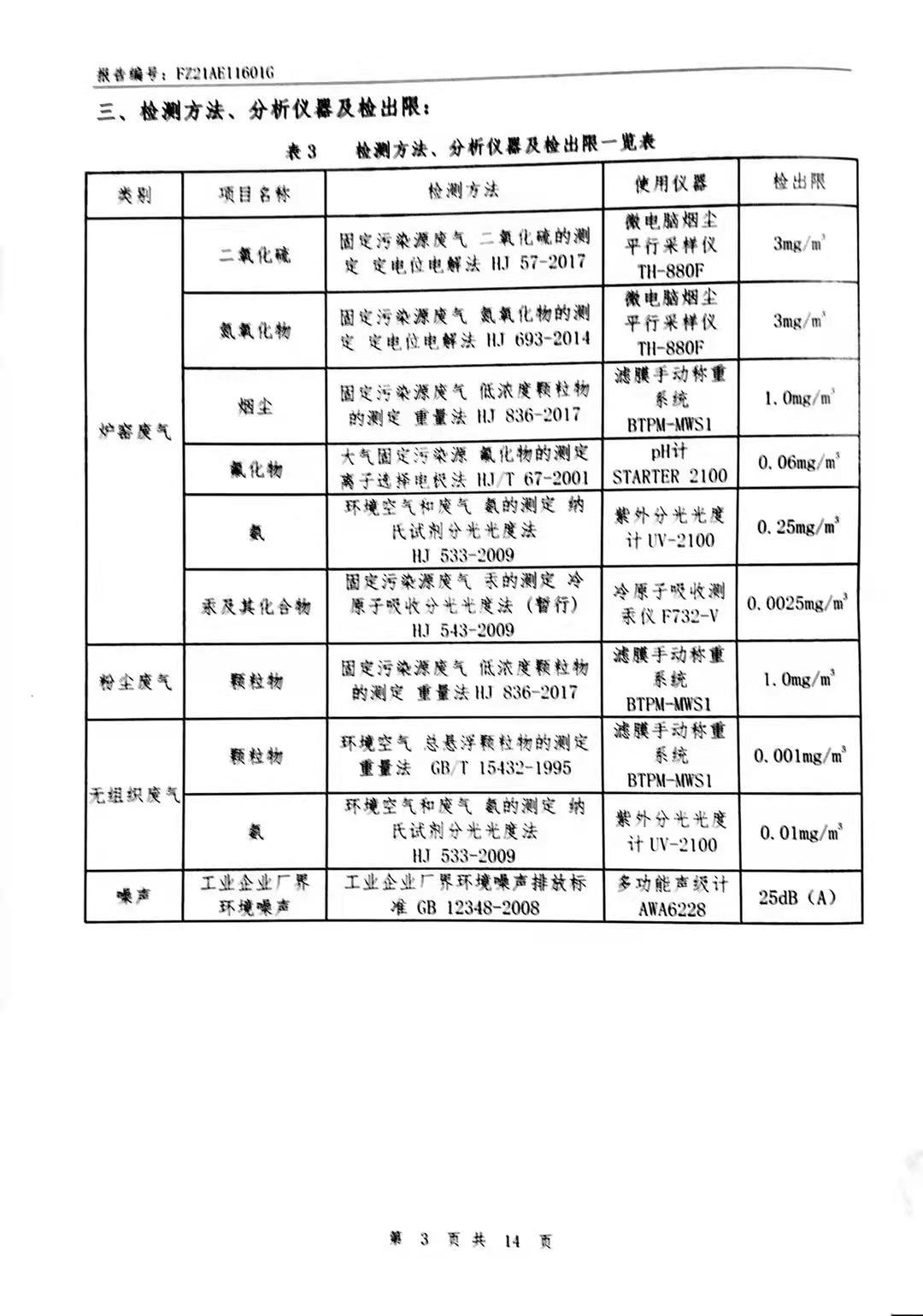 粉塵廢氣、窯爐廢氣、無組織廢氣、噪聲檢測報告