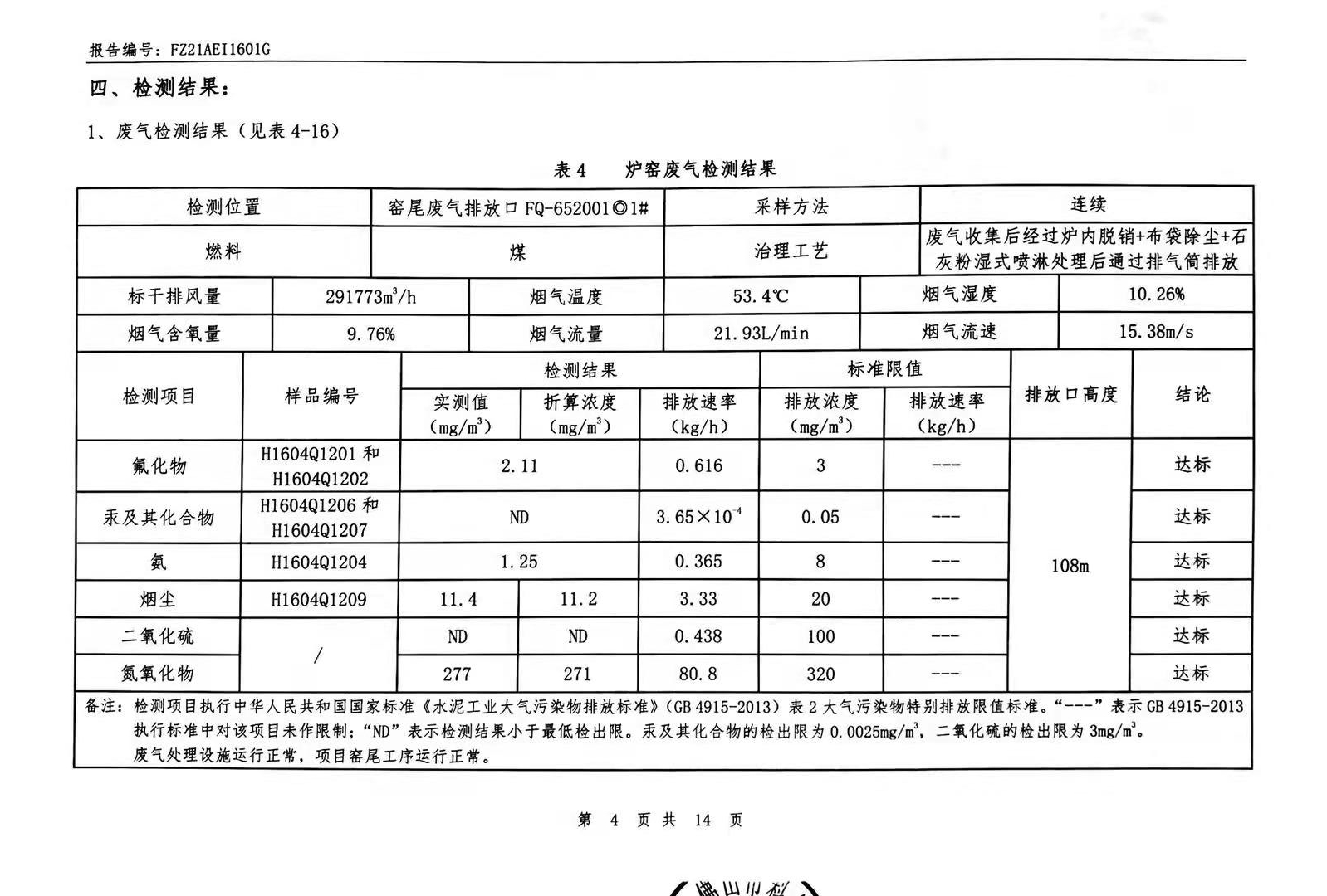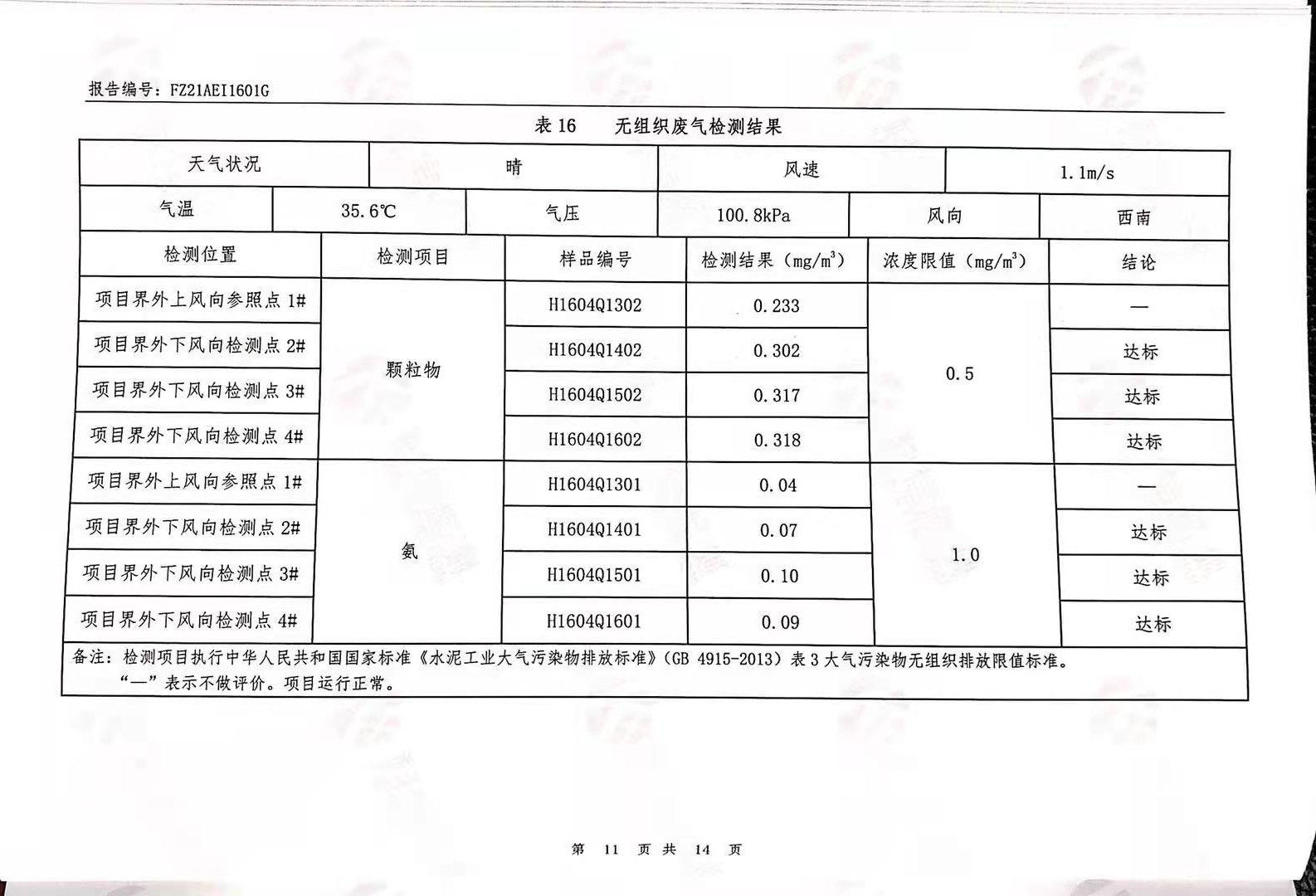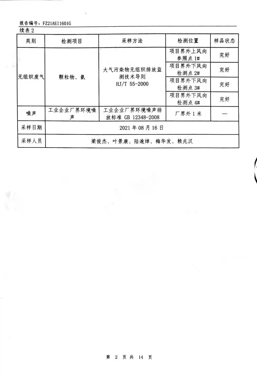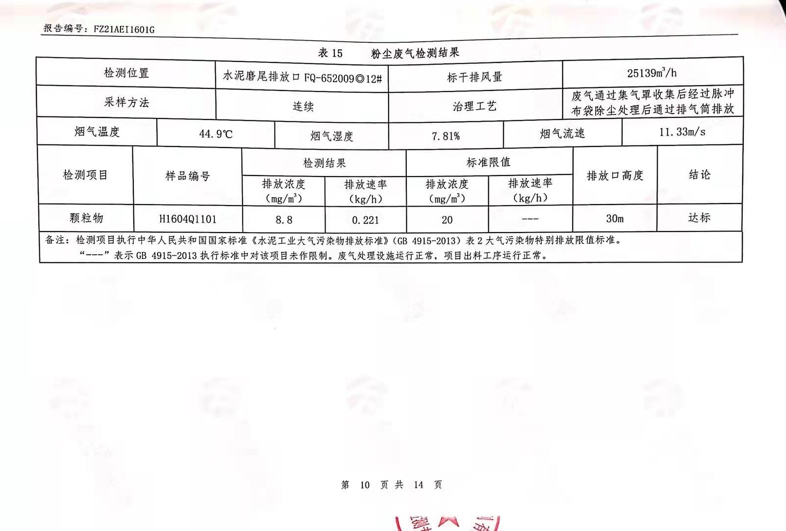 粉塵廢氣、窯爐廢氣、無組織廢氣、噪聲檢測報告