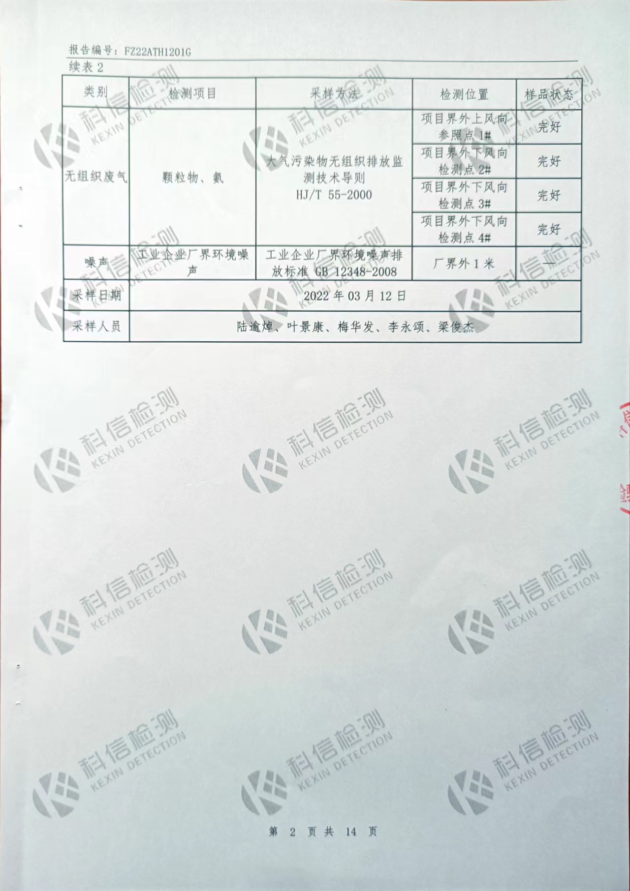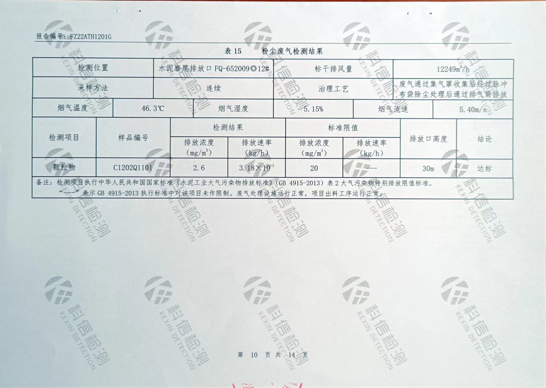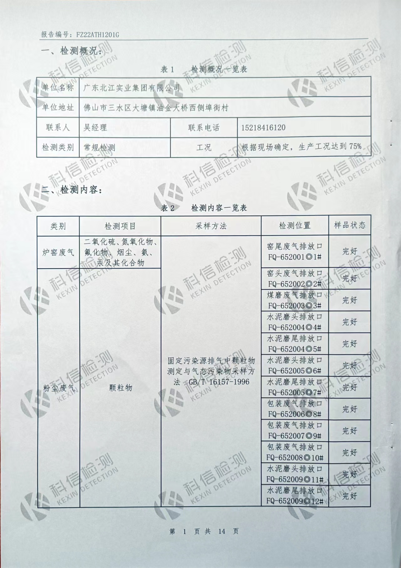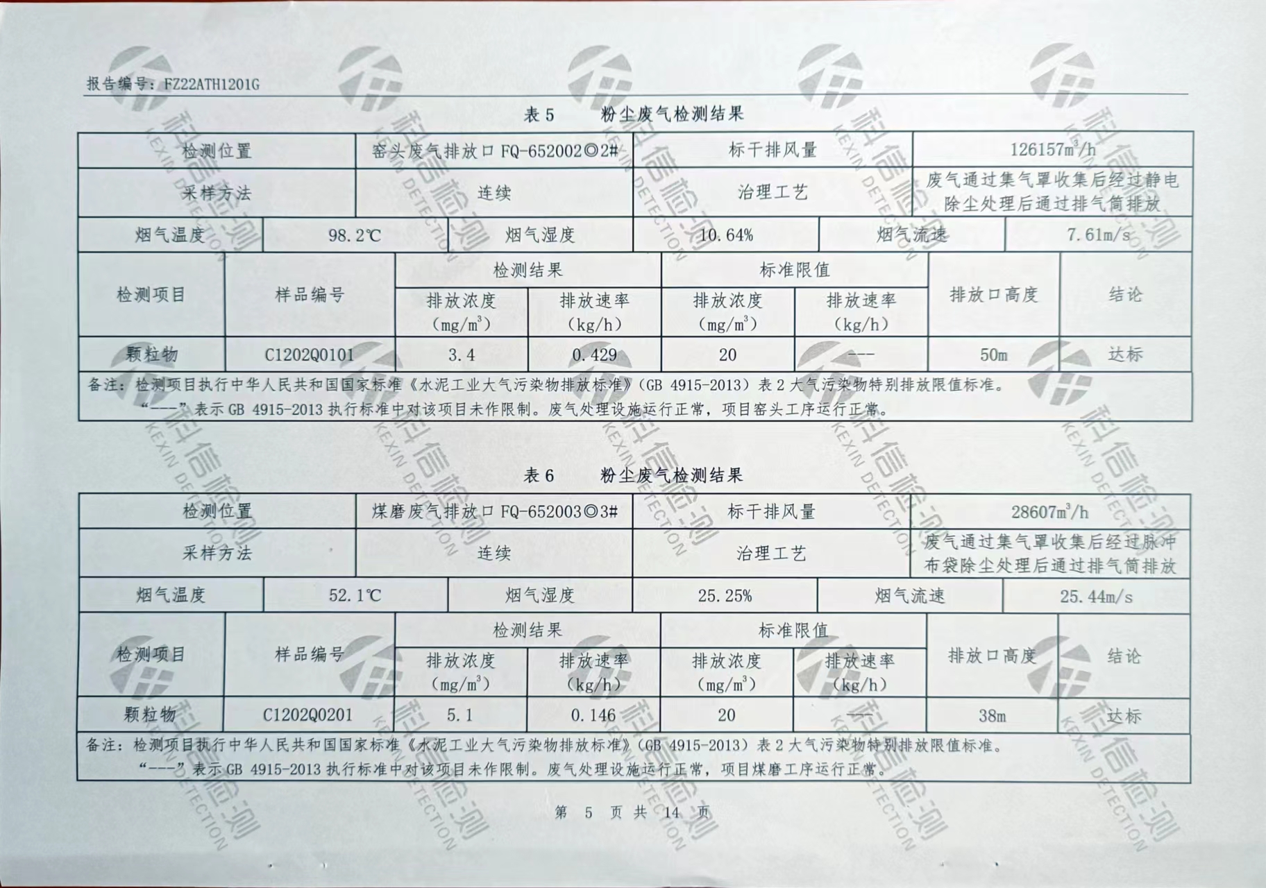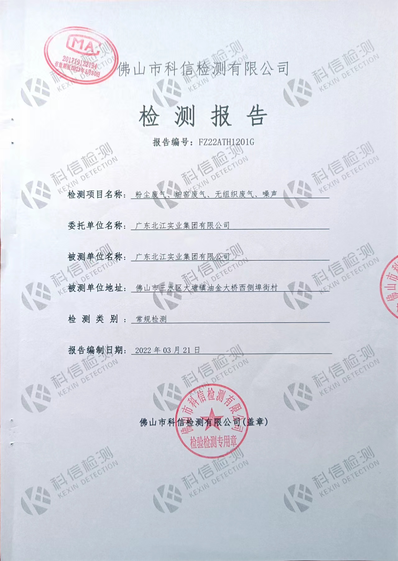 2022年第一度粉塵廢氣、爐窯廢氣、無組織廢氣、噪聲檢測報告